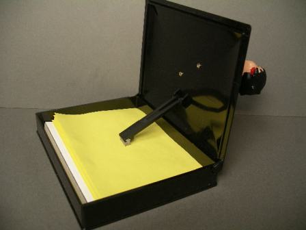 蓋を開け閉めするとメモ用紙が一枚、外に滑り出てくる仕掛けになっています。